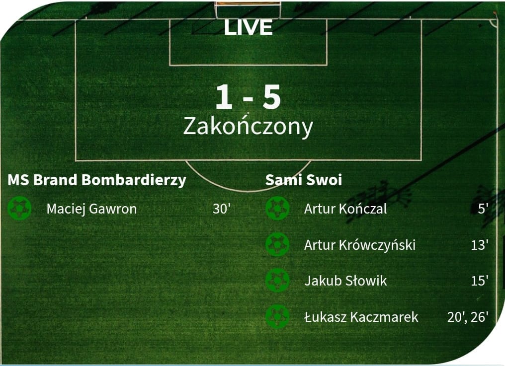 | Maciej Gawron 30' | 1-5 |