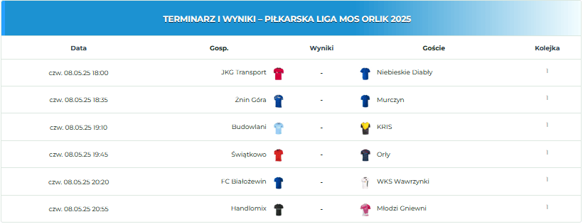 PL MOS Orlik Piłkarska Liga MOS Orlik 2025 – Drużyny i pary 1. kolejki 2025-04-28, 13:00427 Facebook 1 Messenger WhatsApp