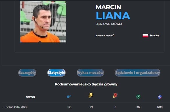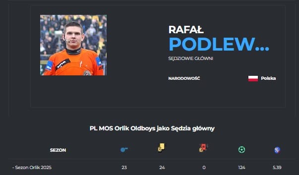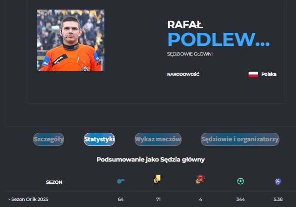 Najwięcej z nich – 23 mecze, jako sędzia główny prowadził Rafał Podlewski. Pokazał w nich 24 żółte kartki a zawodnicy w meczach tych strzelili 124 gole.